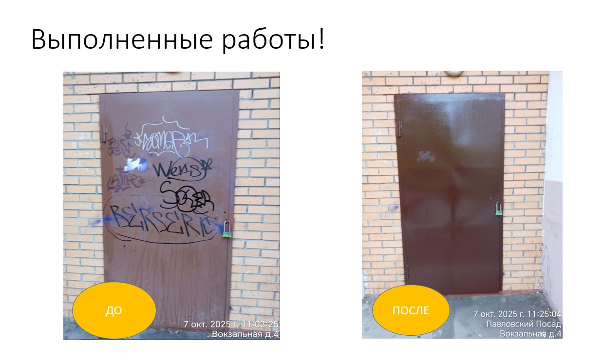 В МКД по адресу: ул.Вокзальная, д.4, который находится в обслуживании ООО "УК "ПОБЕДА", проведены работы по устранению несанкционированных надписей.