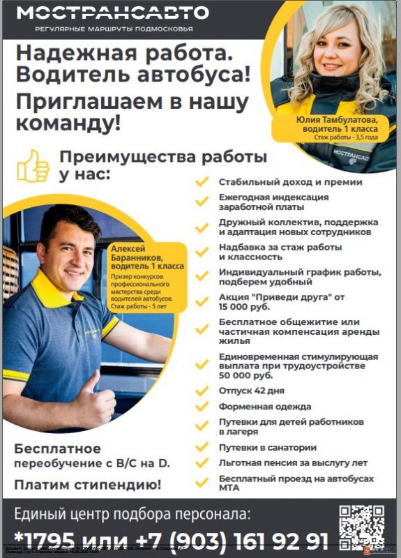 В целях обеспечения стабильной транспортной работы на маршрутах Московской области приглашают на открытые вакансии водителей автобусов в территориальных межмуниципальных транспортных предприятиях АО «МОСТРАНСАВТО»