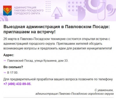 Выездная администрация в Павловском Посаде: задайте вопрос главе округа